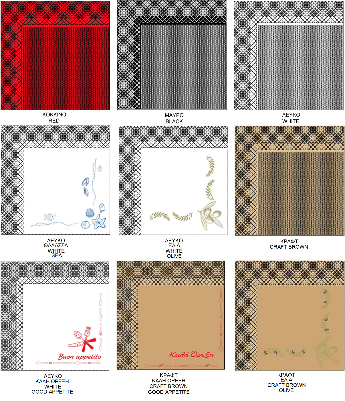 t.33x33cm from very soft and absorbent paper. The product can be printed with the brand name of the customer. Available in 400 sheets per package 6 packages / box - Pallet: 30 boxes.
